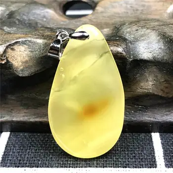 Genuine Natural Yellow Amber Pendant Jewelry For Woman Lady Man Silver Clear Crystal 33x19x4mm Water Drop Beads Gemstone AAAAA