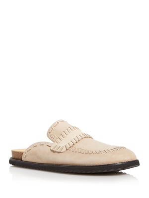 Женские бежевые кожаные шлепанцы FREDA SALVADOR Bone Buffed Calf Combo, Бежевый, EVIE