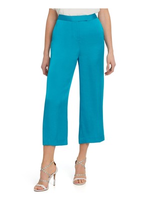 Женские бирюзовые атласные укороченные брюки DKNY на молнии с широкими штанинами, Turquoise, P0DK9COK