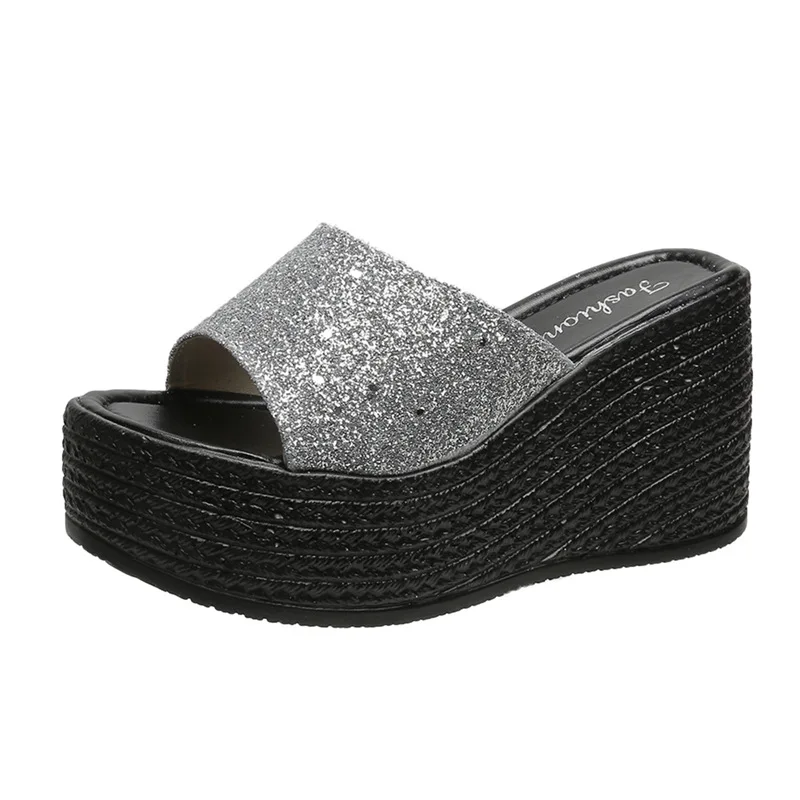 Женские блестящие Нескользящие сандалии на танкетке, пляжные удобные сандалии для отдыха и пляжа, модель 2022 года