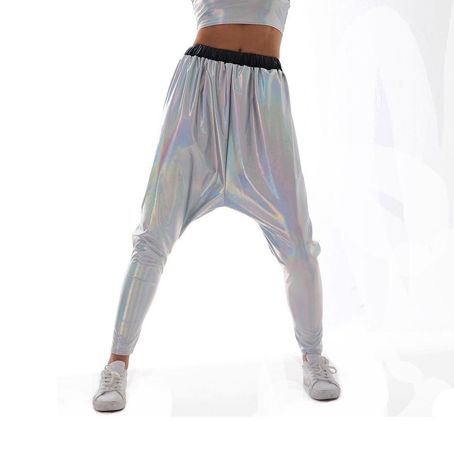 Женские блестящие металлические брюки-джоггеры с высокой талией, голографические брюки в стиле хип-хоп для вечеринок, дискотек, ночных клубов S серебряный/разноцветный