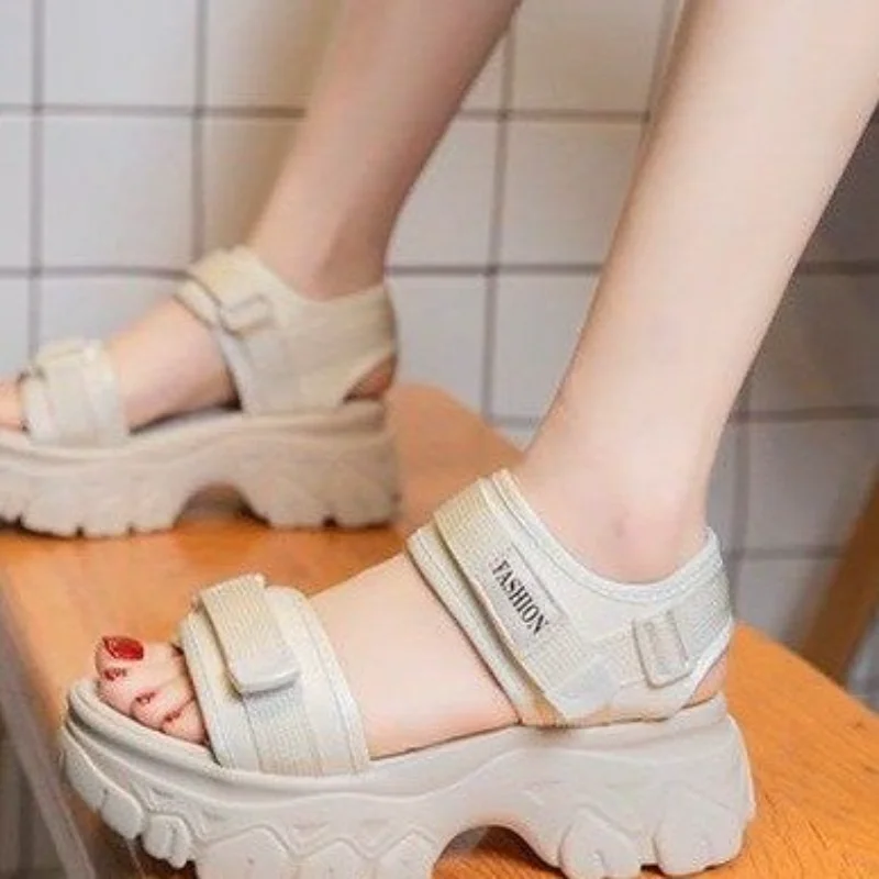 Женские блестящие сандалии 2023, женские летние сандалии на толстой танкетке, женские модные повседневные сандалии на высокой платформе для девочек