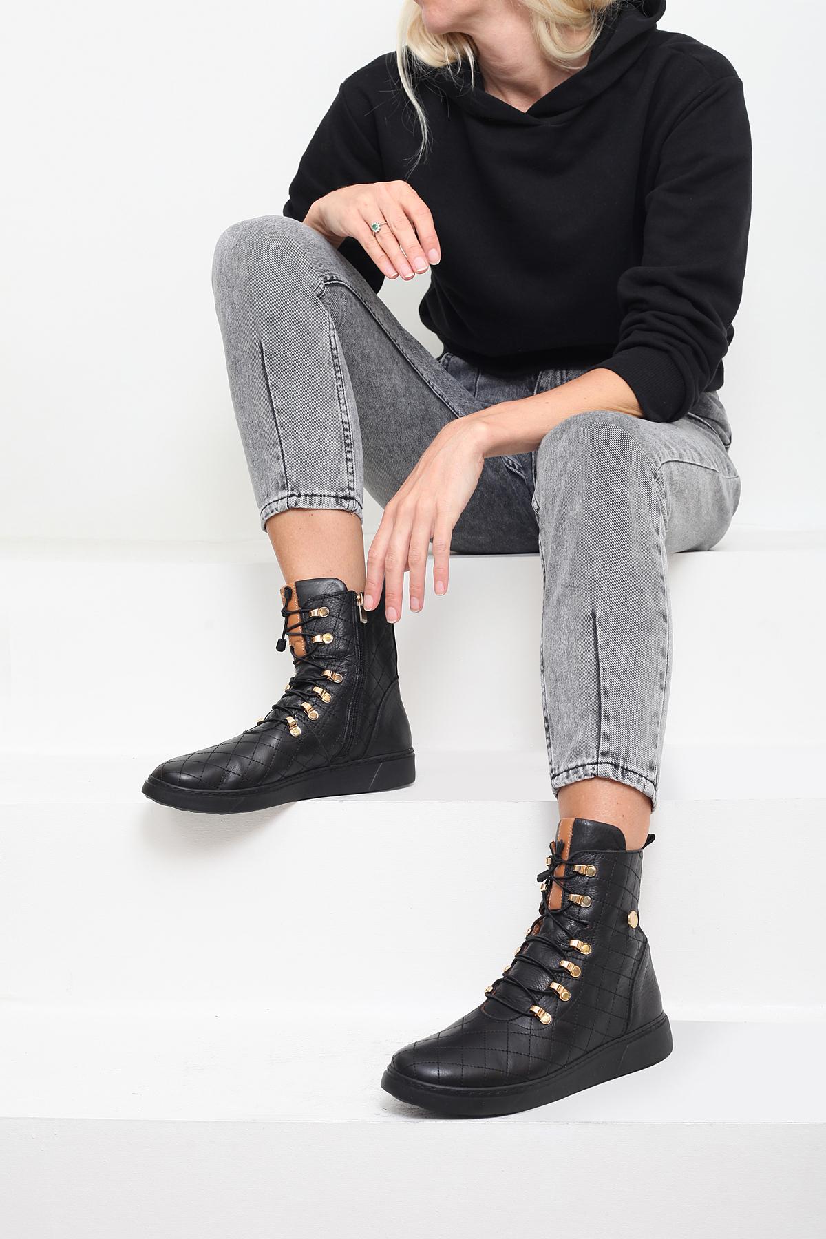 Женские большие ботинки из натуральной кожи больших размеров 41-42-43-44-45, черные 45