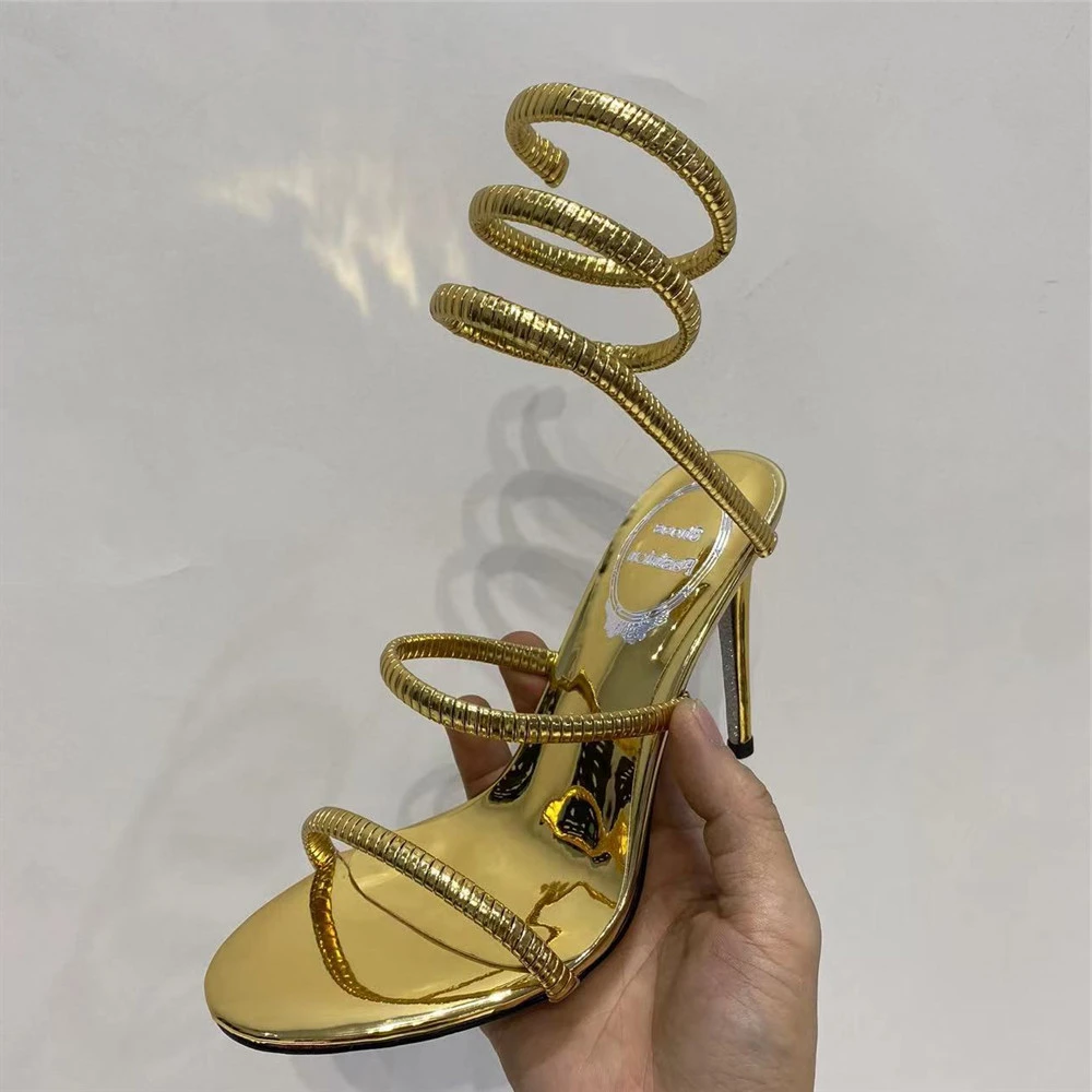 Женские босоножки в форме змеи с ремешком на щиколотке и круглым носком