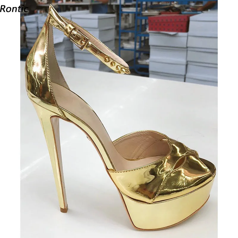 Женские босоножки из лакированной кожи на платформе, с открытым носком, размеры 5-20