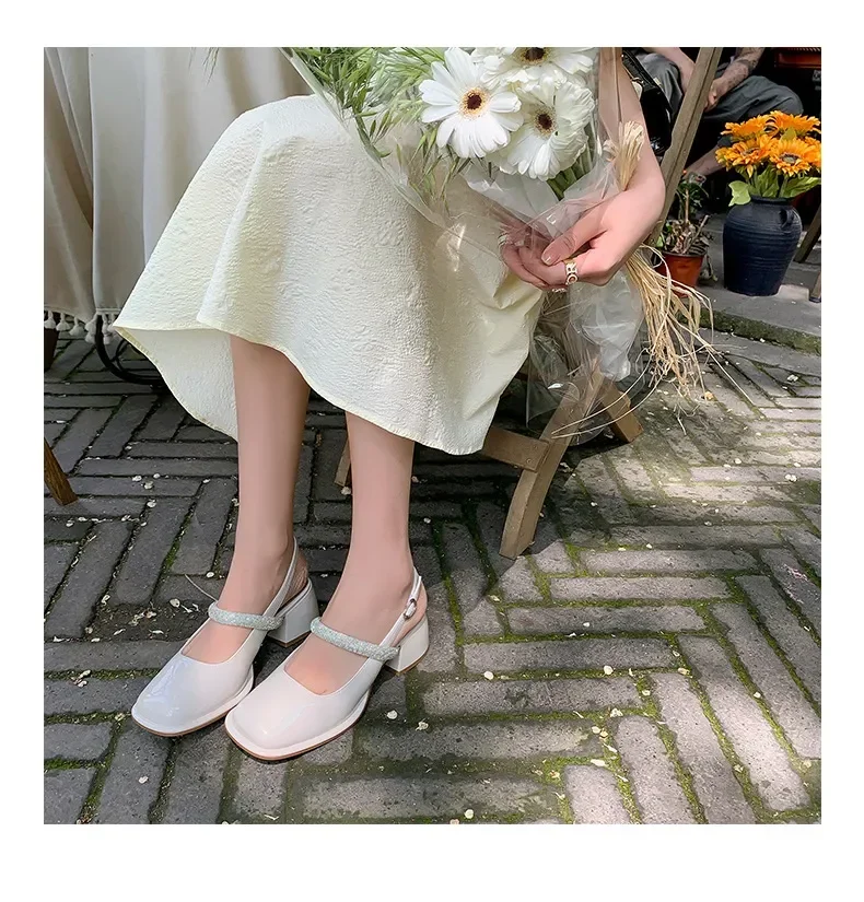 Женские босоножки на среднем каблуке, туфли мэри джейн на толстом каблуке, элегантные французские сандалии, весна-лето 2024