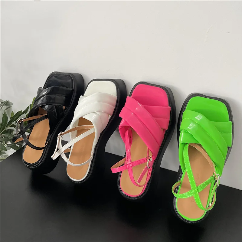 Женские босоножки на танкетке, бежевые сандалии с ремешком и пряжкой, на толстой средней платформе, для маффинов, 2022