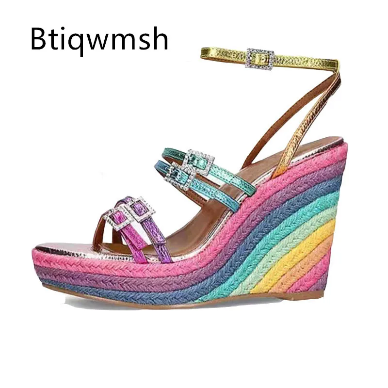Женские босоножки на танкетке, из натуральной кожи, с открытым носком