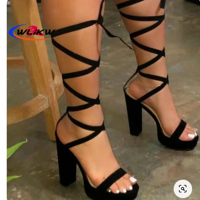 Женские босоножки на танкетке, однотонные босоножки на шнуровке и высоком каблуке, туфли с открытым носком, Размеры 35-43, для лета, 2022