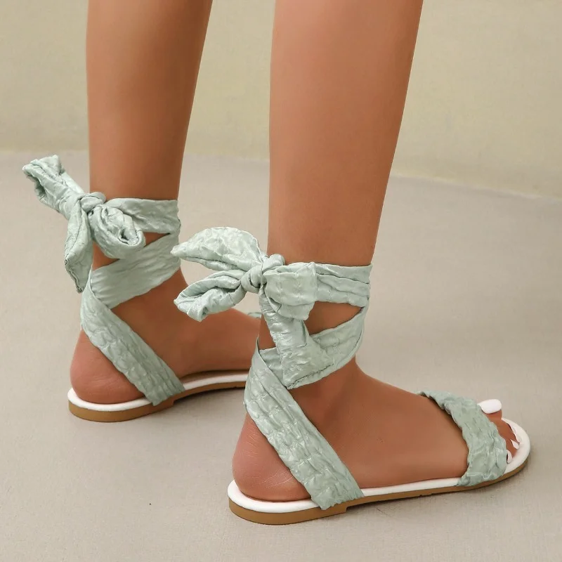 Женские босоножки на шнуровке, сандалии для пляжа, повседневная обувь на плоской подошве, лето 2023