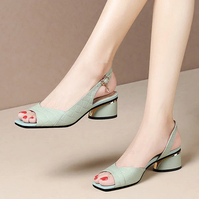 Женские босоножки с открытым носком, туфли-лодочки с открытым носком и ремешком сзади, сандалии на среднем каблуке с открытым носком и пряжкой, Новинка лета 2023