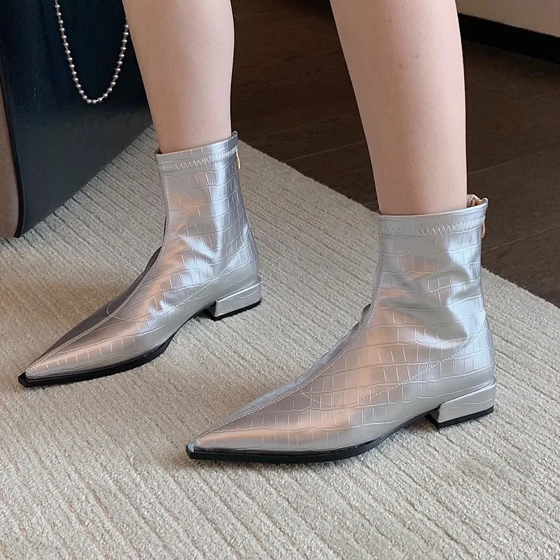 Женские ботильоны из ПУ кожи, с молнией и острым носком, на низком квадратном каблуке