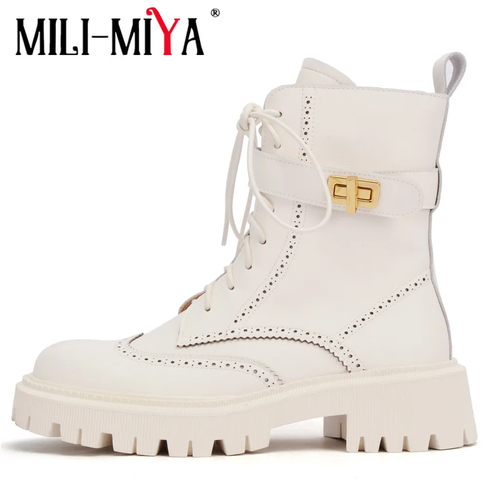 Женские ботильоны из коровьей кожи MILI-MIYA, однотонные модные уличные ботинки с круглым носком на толстом каблуке ручной работы, размер 34-40