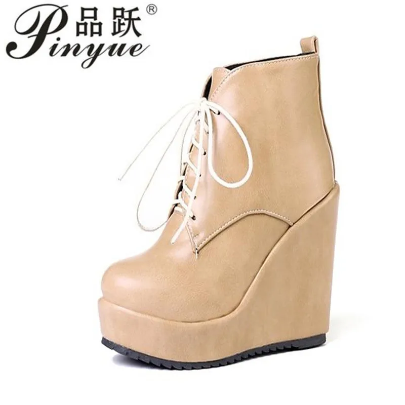 Женские ботильоны из мягкой кожи, на толстой подошве 11,5 см, осенне-зимняя обувь на высоком каблуке, мотоциклетные Ботильоны на танкетке, размеры 32-43