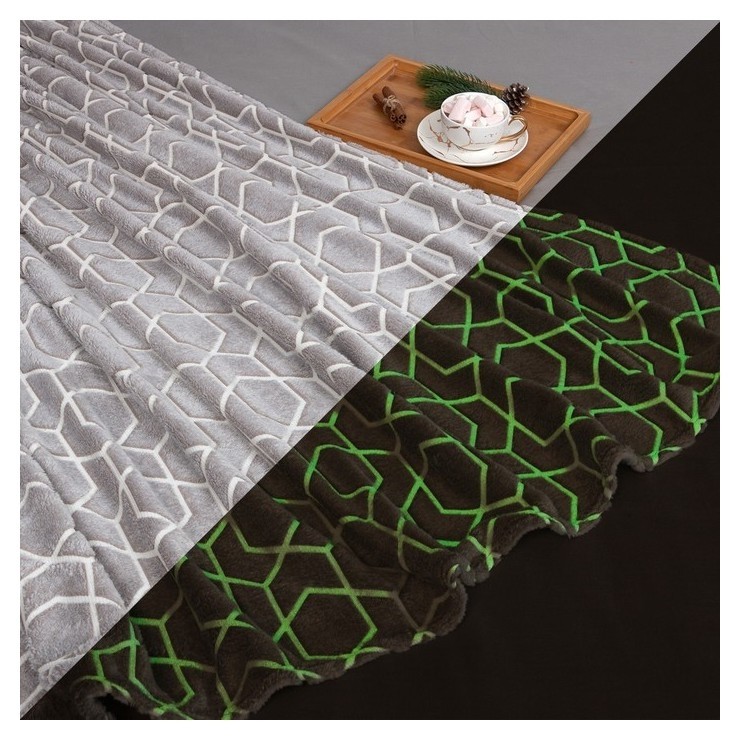 Плед светящийся в темноте этель "Геометрия" 180*200 см,100% п/э, корал-флис 220 гр/м2