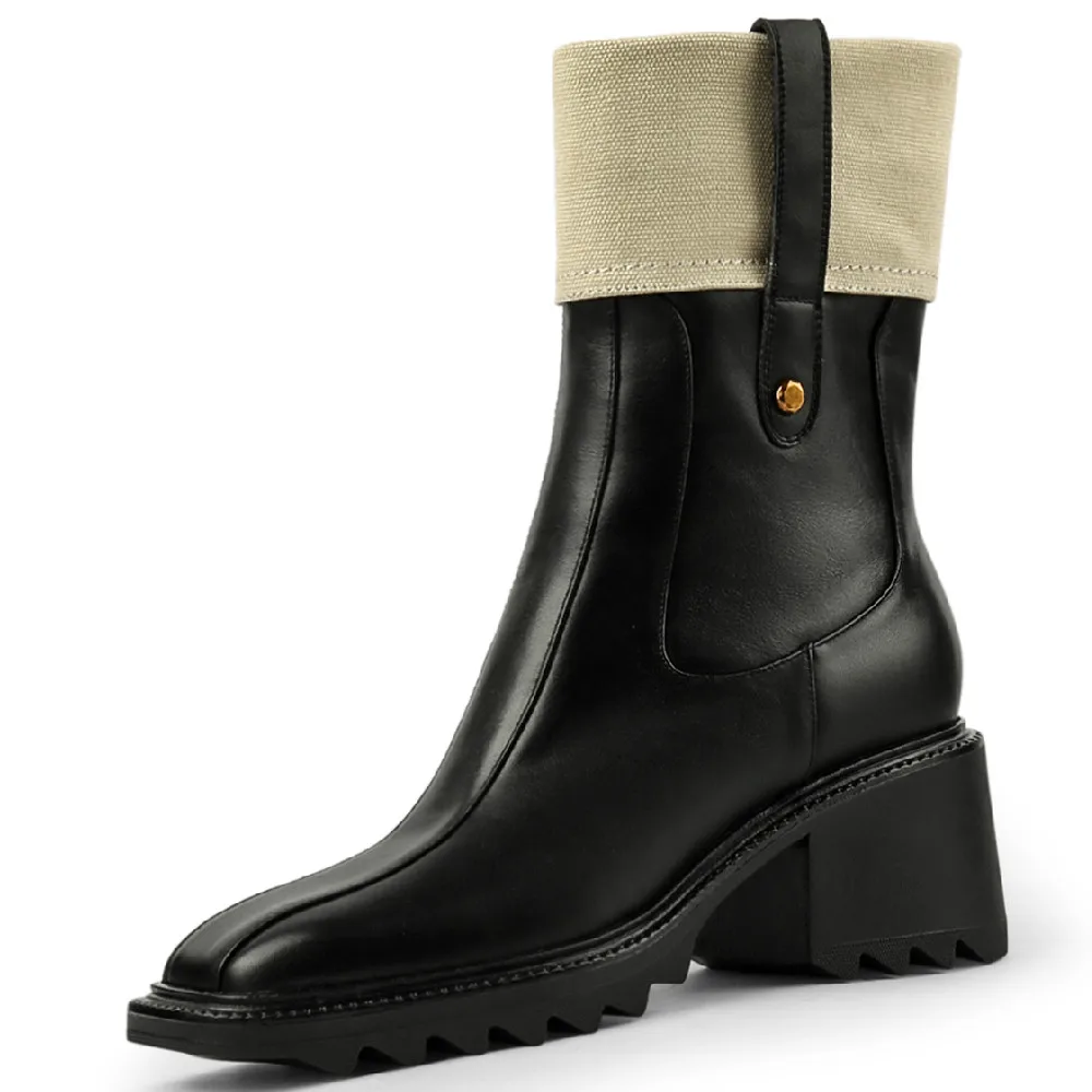 Женские ботильоны из натуральной кожи, с боковой молнией и квадратным носком