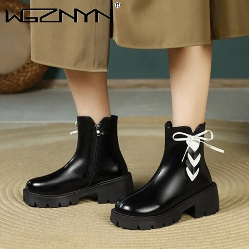 Женские ботильоны на платформе, повседневные рабочие ботинки на толстом каблуке, в стиле ретро, Осень-зима, 2023