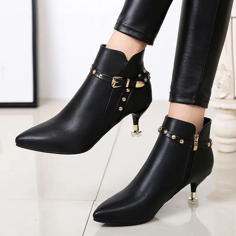 Женские ботильоны на шпильке Maogu, черные кожаные ботинки с острым носком и заклепками в Корейском стиле, Осень-зима 2023