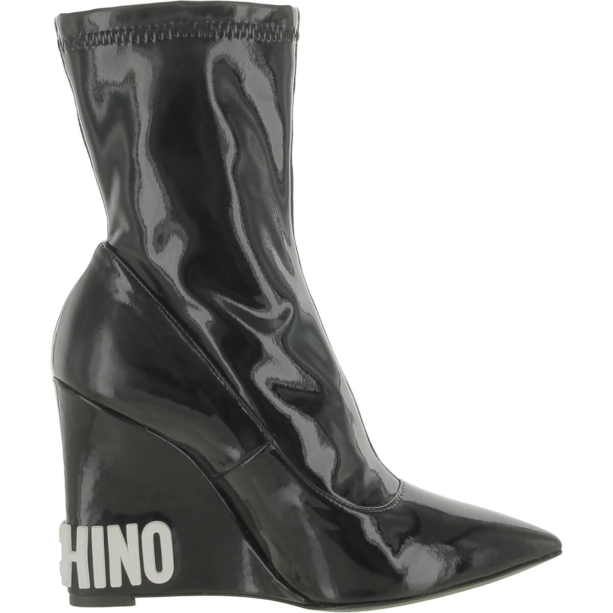 Женские ботильоны с лакированным тиснением Moschino, черный