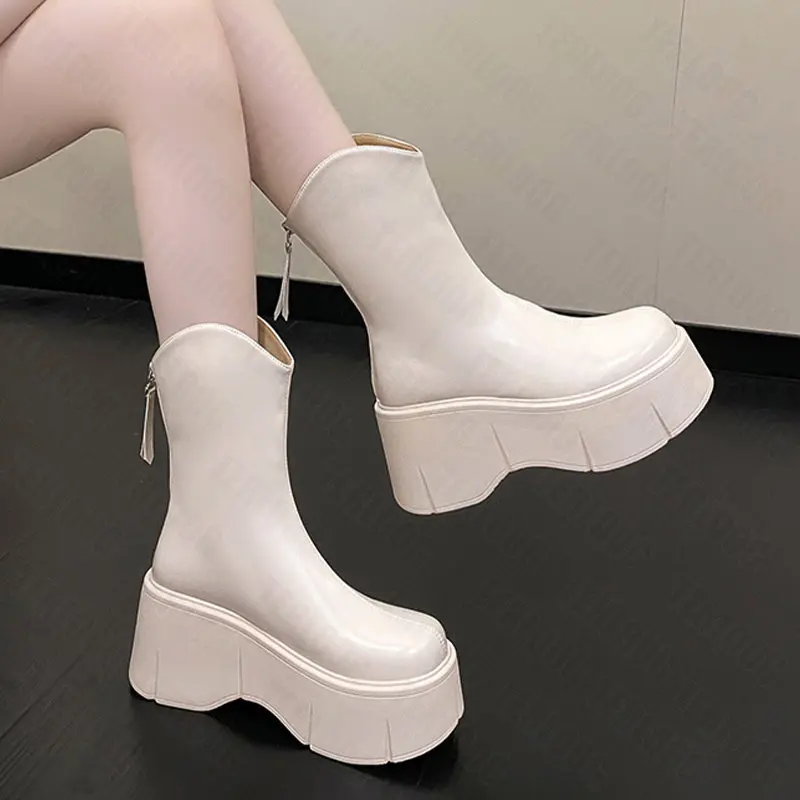 Женские ботильоны челси на плоской подошве, повседневная обувь, новинка зимы 2022, модные черные мотоциклетные ботинки на платформе, женские ...
