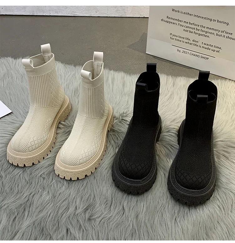 Женские ботинки в британском стиле, Дизайнерские ботильоны из эластичной ткани на платформе, мотоциклетные ботинки, 2021