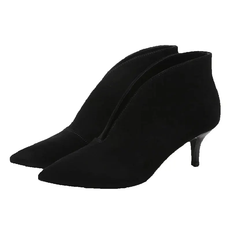 Женские ботинки на высоком каблуке с острым носком и V-образным вырезом