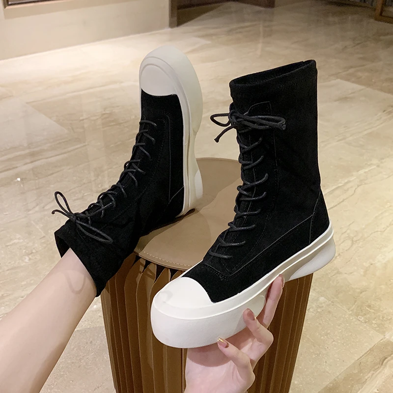 Женские ботинки на молнии, с круглым носком и плоской подошвой, до середины икры