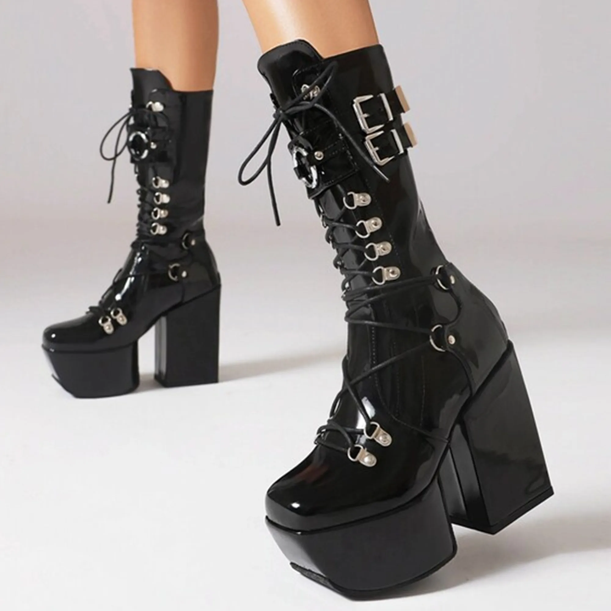 Женские ботинки на очень высокой платформе, с квадратным носком