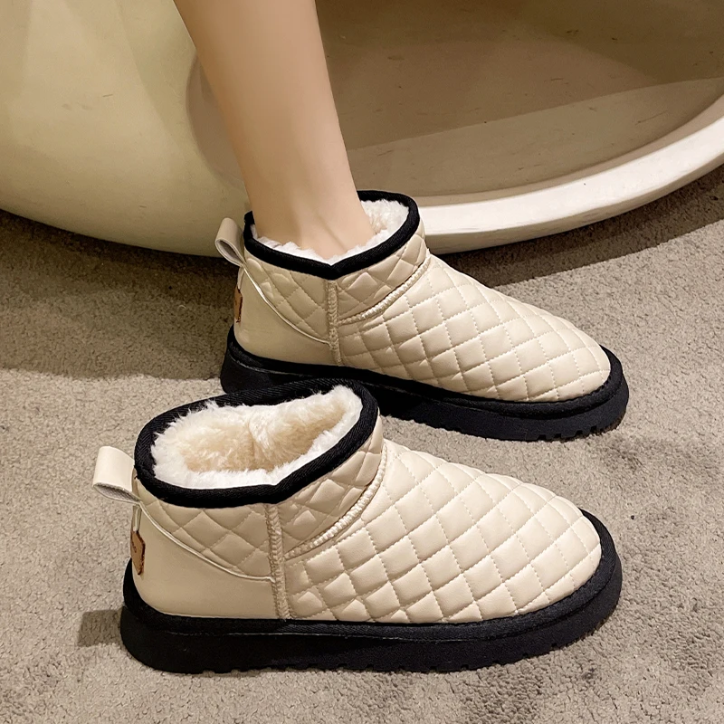 Женские ботинки на плоской подошве, белые ботинки из искусственной кожи, с мехом, на среднем каблуке