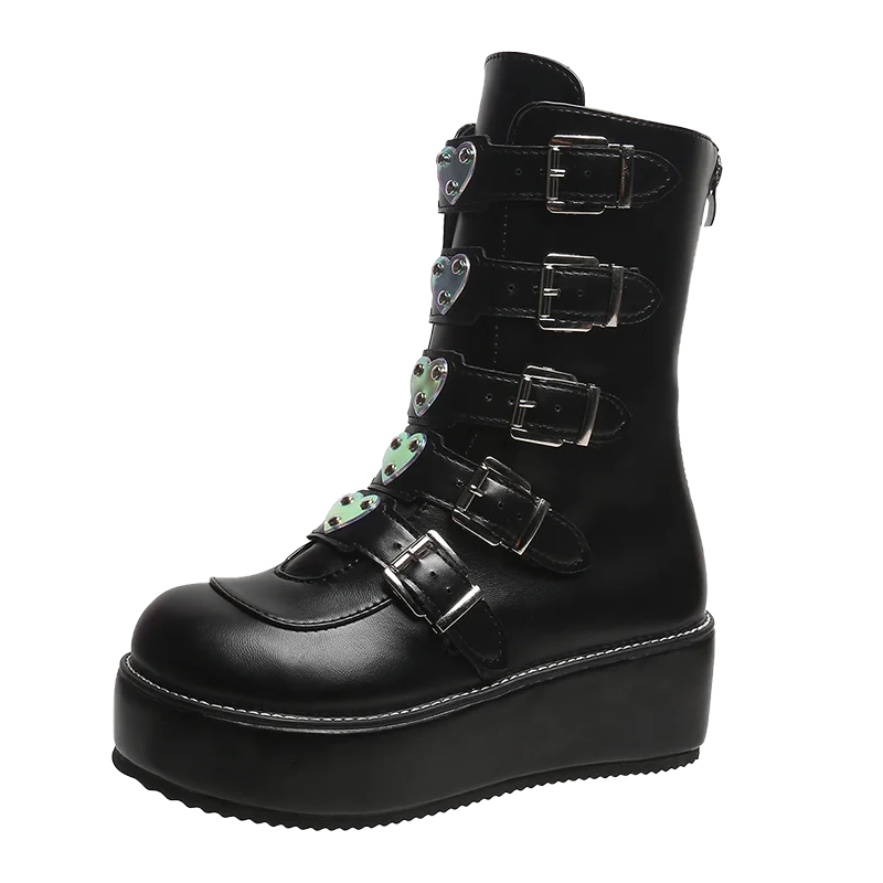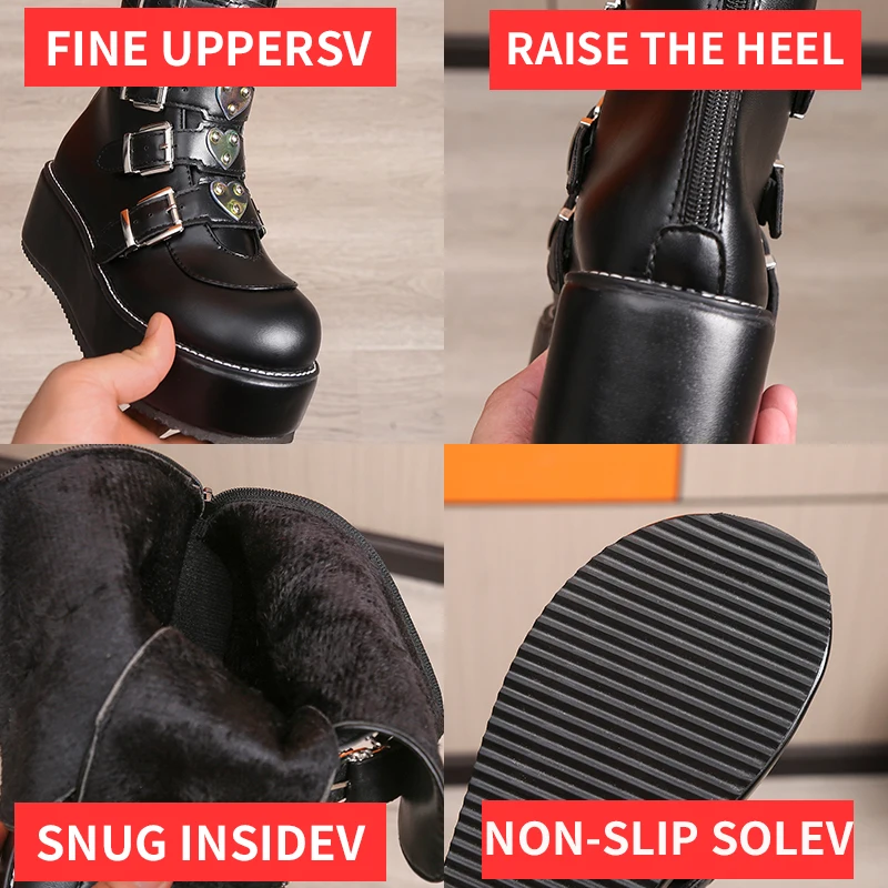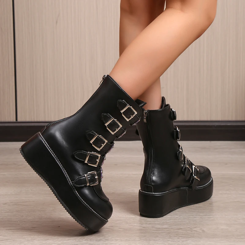 Женские ботинки на танкетке, готические сапоги в стиле панк с пряжкой для косплея, обувь на платформе, 2022