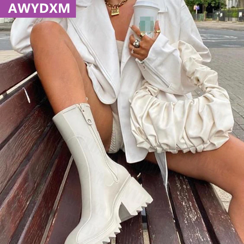 Женские ботинки челси с квадратным носком, зимние теплые ботинки на платформе, роскошные мотоциклетные ботинки в стиле панк, 2022