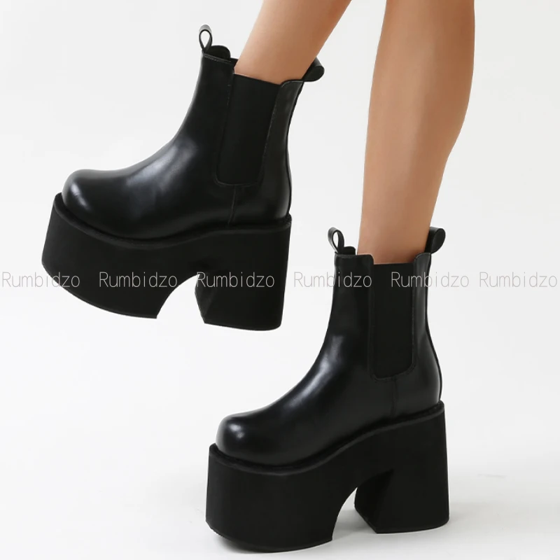 Женские ботинки челси с круглым носком, на очень высоком массивном каблуке