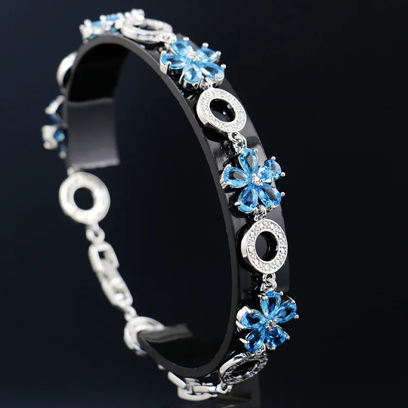 Женские браслеты Funmode, подарочные браслеты с голубым кубическим цирконием, с подвеской в виде цветка, FB145