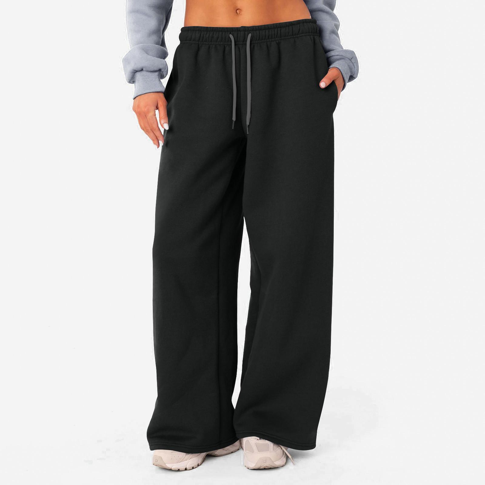 Женские брюки для йоги. Удобные брюки на шнурке. Свободные прямые брюки с карманами. Однотонные спортивные штаны. Широкие штаны для бега. XXL чёрный