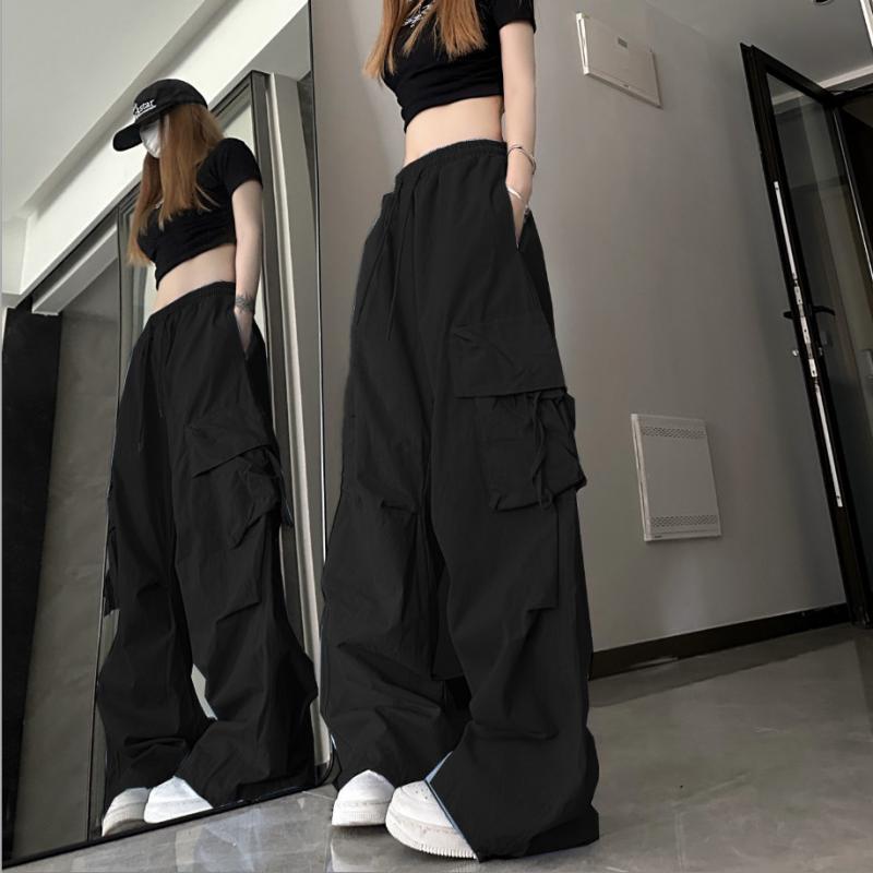Женские брюки-карго в стиле хип-хоп Y2K, уличная одежда, Harajuku, повседневные брюки с большими карманами, корейские свободные брюки с высокой талией, шикарный дизайн, однотонные брюки S