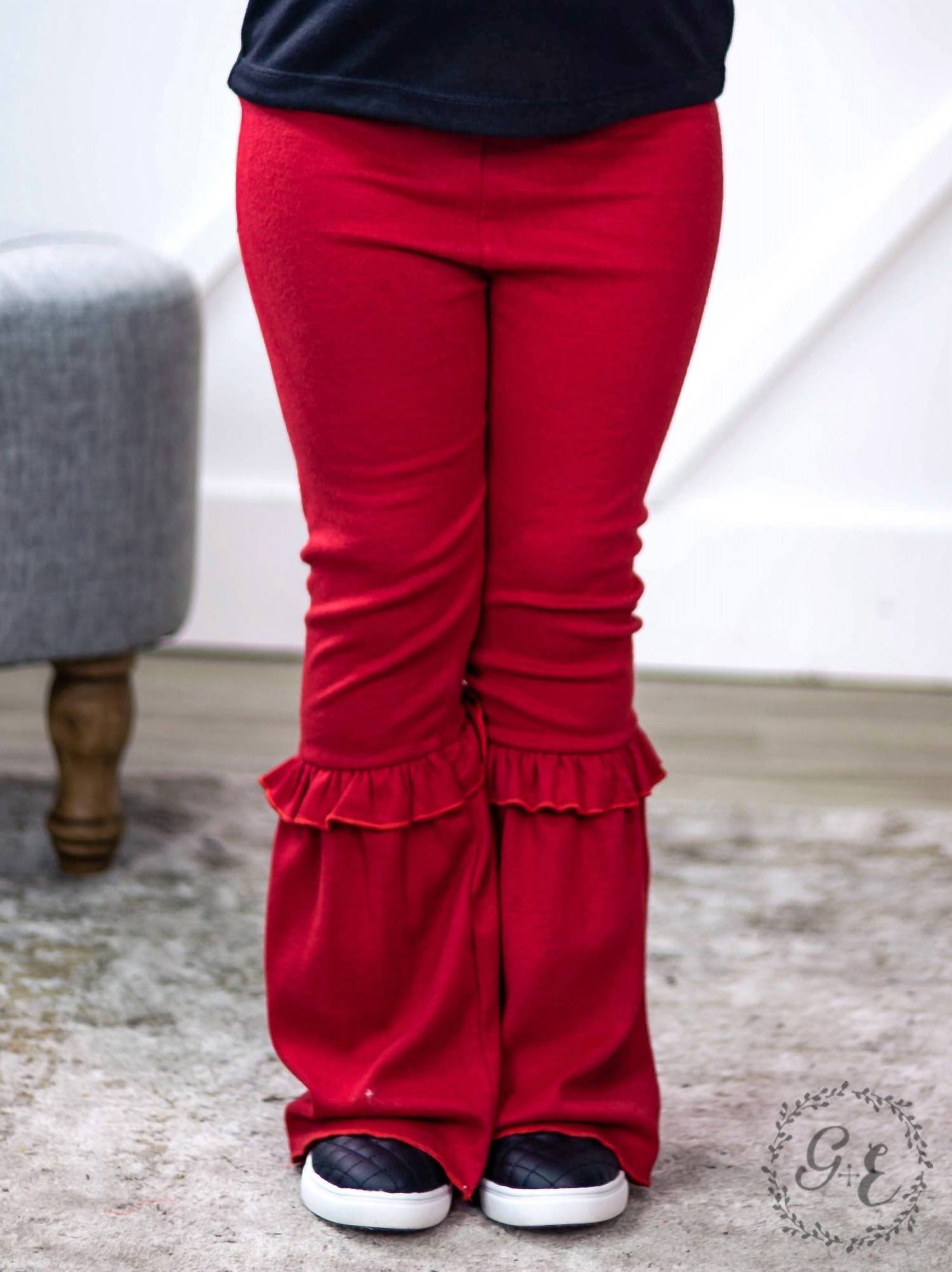 Брюки клеш с оборками My Feathers для девочек с красными воланами Southern Grace