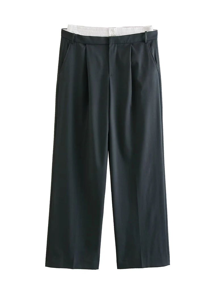 Женские брюки составного кроя с боковыми карманами, высокой талией и молнией