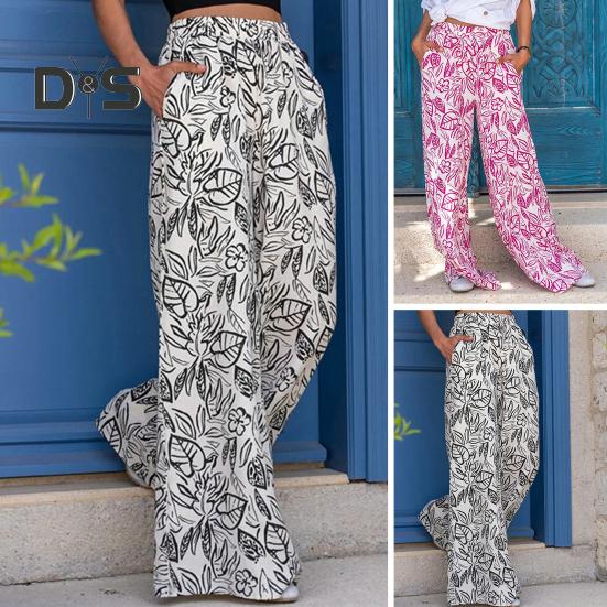 Женские брюки с высокой эластичной резинкой на талии, широкие карманы с цветочным принтом, глубокая промежность, контрастный цвет, мягкие свободные дышащие женские брюки длиной до пола XL чёрный