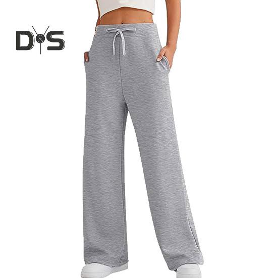 Женские брюки с высокой эластичной талией, широкие свободные однотонные мягкие повседневные брюки с завязками по всей длине, карманы простого фасона, женские спортивные штаны для йоги и бега, длинные M светло-серый