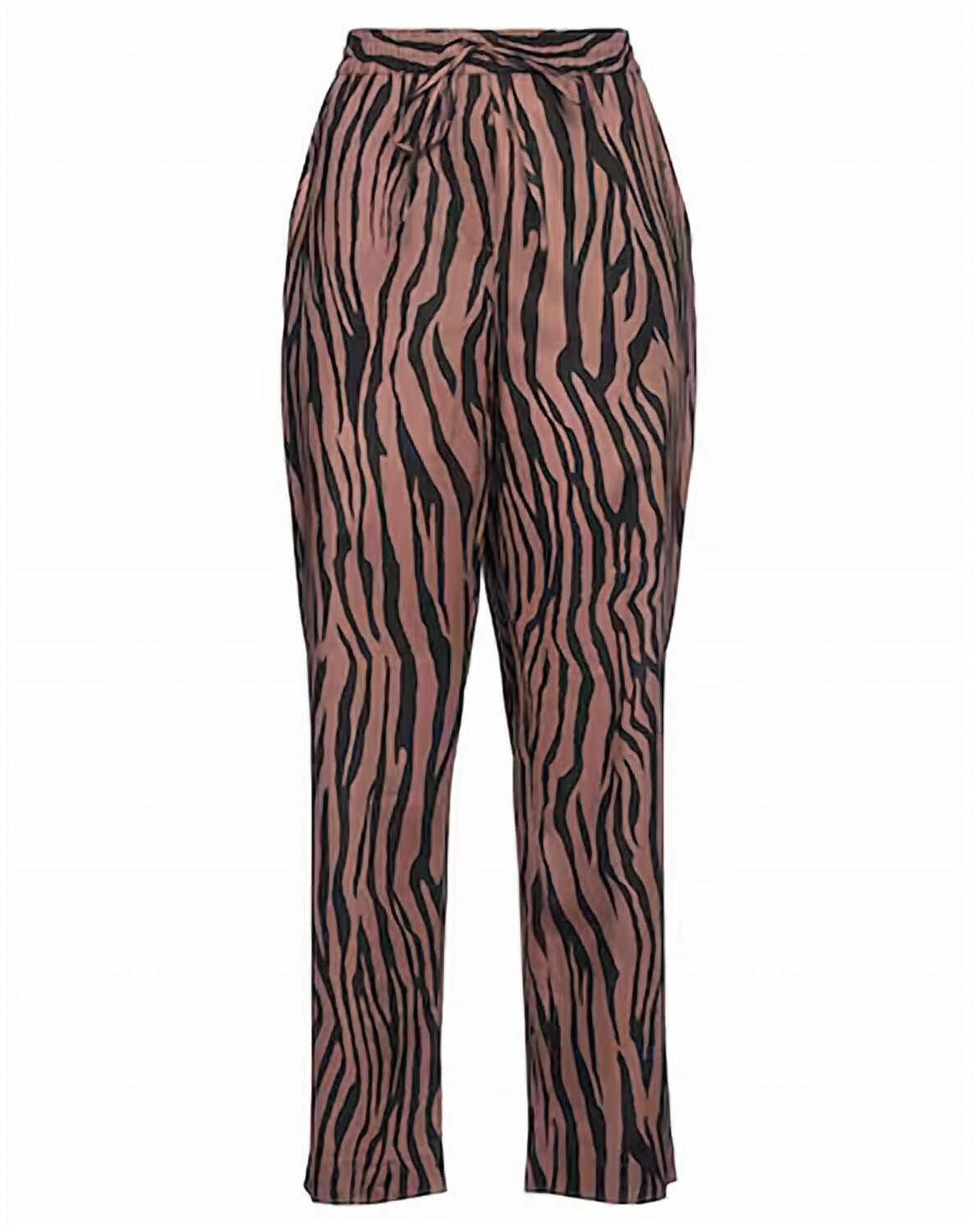 Женские брюки с зебровым принтом шоколадного цвета. nude