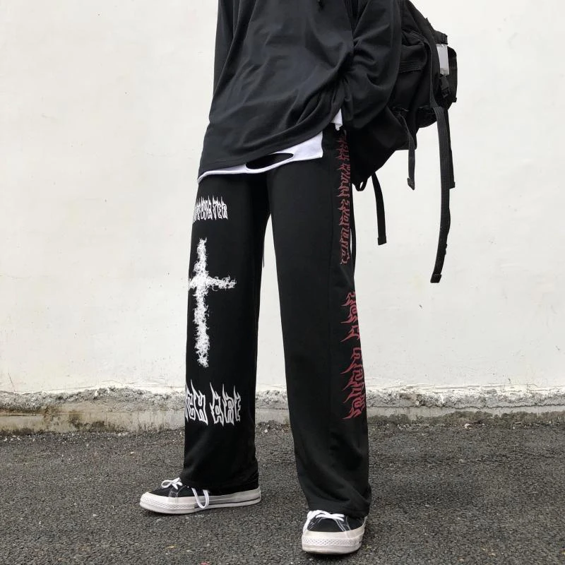 Женские брюки с широкими штанинами MEXZT, готические свободные прямые брюки с граффити в японском стиле, черные повседневные спортивные штаны в стиле Харадзюку, Bf, Новинка