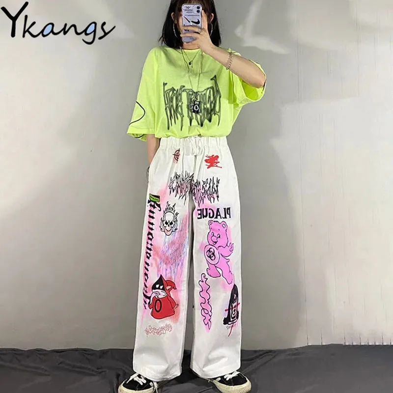 Женские брюки, уличная одежда, готические брюки оверсайз с широкими штанинами, повседневные брюки в стиле хип-хоп Y2k, женские винтажные пант...