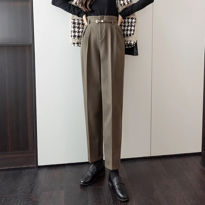 Женские брюки 2022, модные эластичные свободные женские брюки, повседневные утепленные брюки для женщин, брюки на пуговицах с карманами и поя...