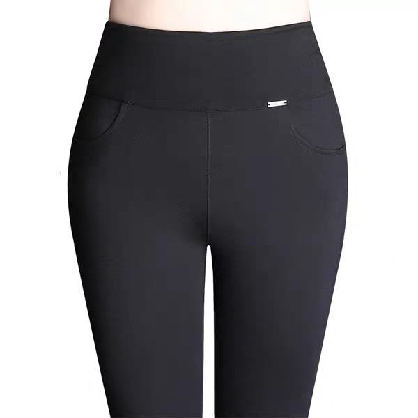 Женские весенне-осенние тонкие брюки с девятью завышенной талией, верхняя одежда, большие эластичные брюки большого размера S чёрный
