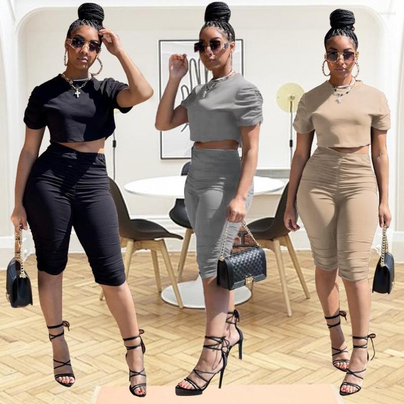 Women' Tracksuits Women Two Pieces Sets Short Sleeve Tops Jogger Shorts Pants Suit Sport Fitness Outfit Matching Set Ensemble Femme, Black