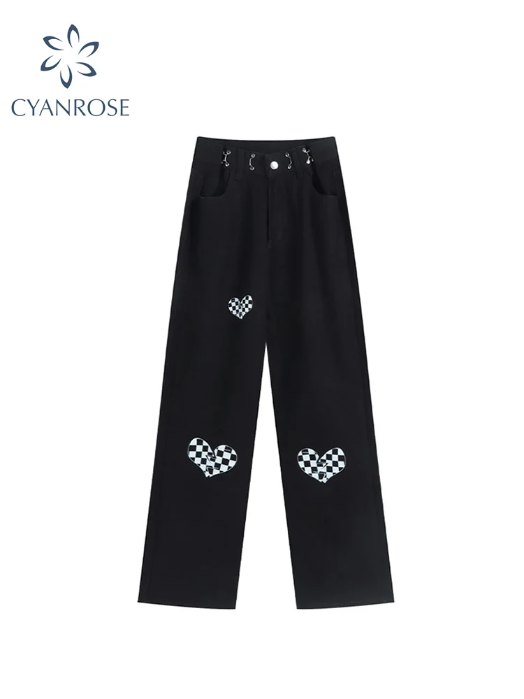 Женские винтажные джинсы с принтом в виде сердца, модные джинсы с высокой талией в стиле Харадзюку, уличная одежда, женские джинсовые брюки ...
