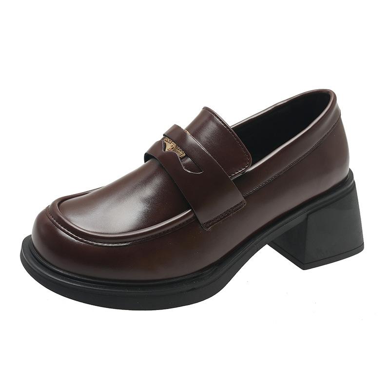 Женские винтажные кожаные туфли на толстом высоком каблуке с толстой подошвой и туфли в британском стиле 39 коричневый