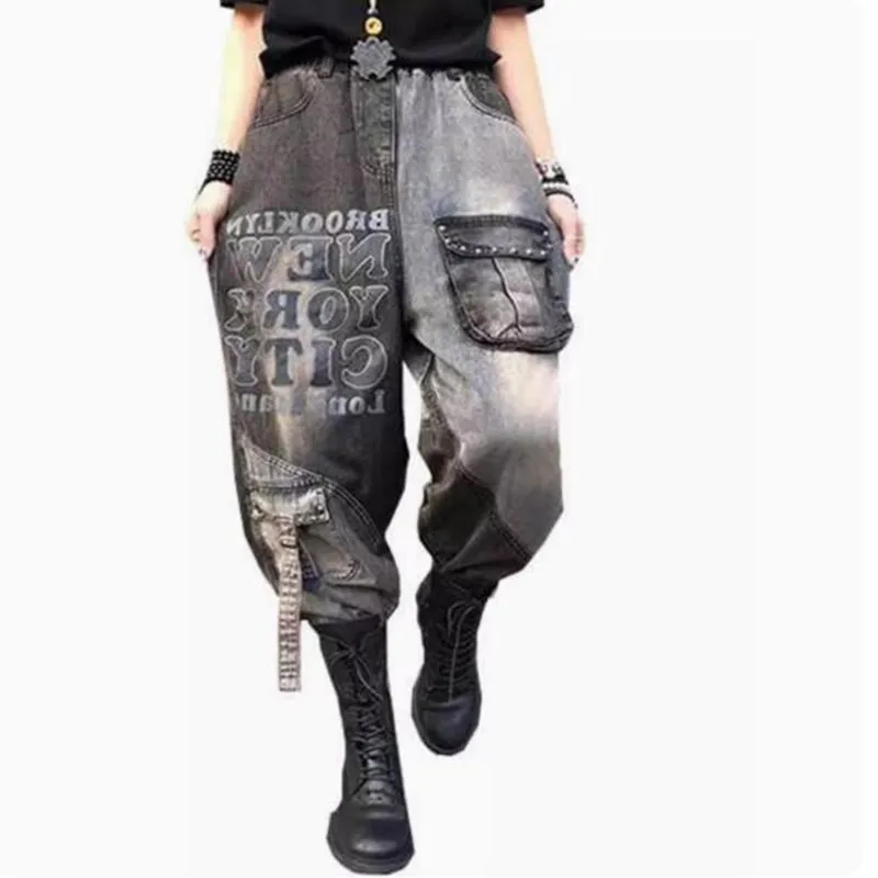 Женские винтажные рваные джинсовые шаровары, Свободные повседневные брюки с высокой талией, q422, 2024