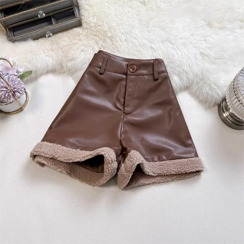 Женские винтажные шорты из искусственной кожи, широкие шорты с высокой талией в стиле пэчворк на осень и зиму, 2024