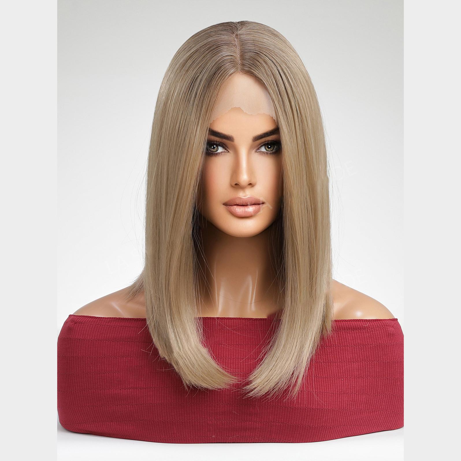 Женские волосы 46 см, золотые длинные прямые волосы, Т-образные передние кружева, розовые волосы, сетка для волос, полный головной убор, кружевные парики ручной работы, парик канекалон 46cm золотой